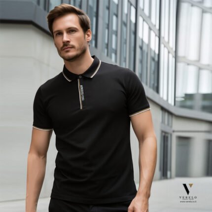 פולו קצר שחור מבד סריג של ROBERTO VINO