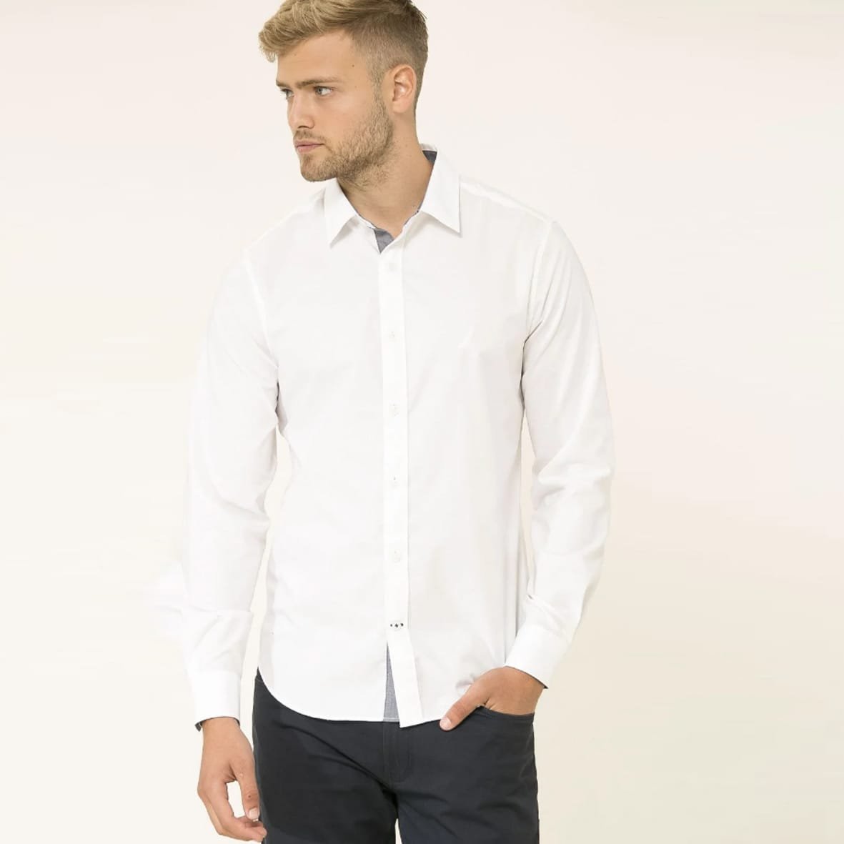 - חולצה מכופתרת חלקה לגבר עם שרוולים ארוכים בגזרה קלאסית.