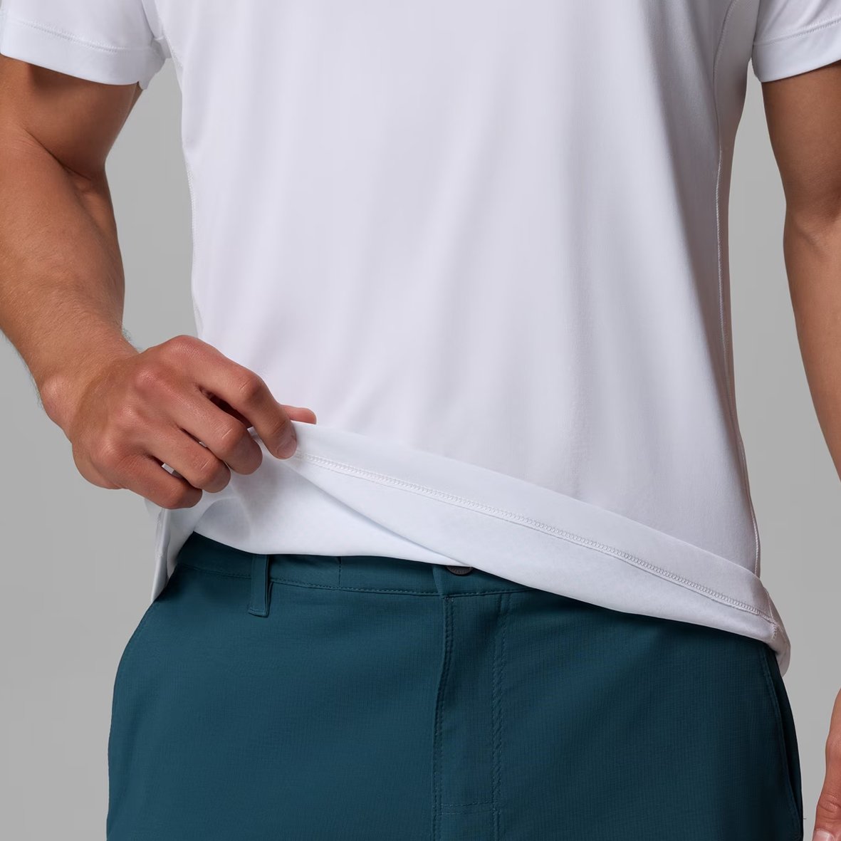 • Omni-Wick™‎ שומר עליכם יבשים וקרירים על ידי משיכת לחות אל פני השטח של הבד לצורך אידוי, ומספק ייבוש מהיר ונוחות קרובה לעור גם בחום.