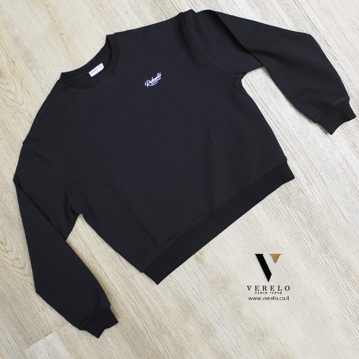 •גזרת סלים עם שם המותג באותיות בולטות עבודת ריקמה על החולצה בחזית מקדימה בקטן ובגב בגדול וגם על המכנס בקטן ליד הכיס .