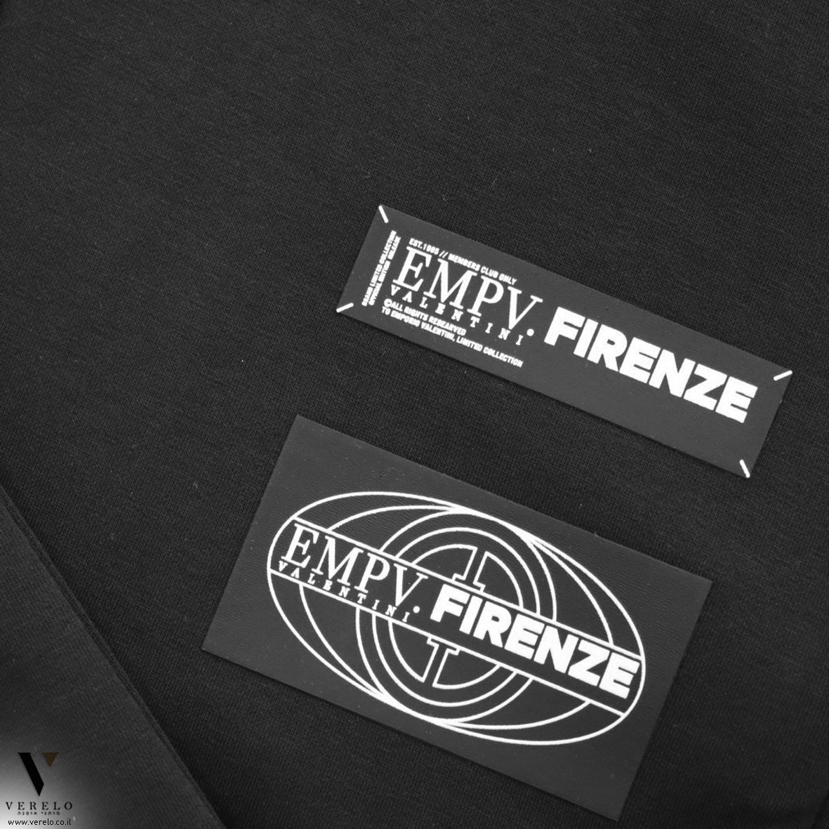 • חליפת קפוצ'ון גזרת REGULAR עדינה ועיצוב מודפס בחזית החולצה עם שילוב שם החברה EMPORIO VALENTINI על הרוכסנים.