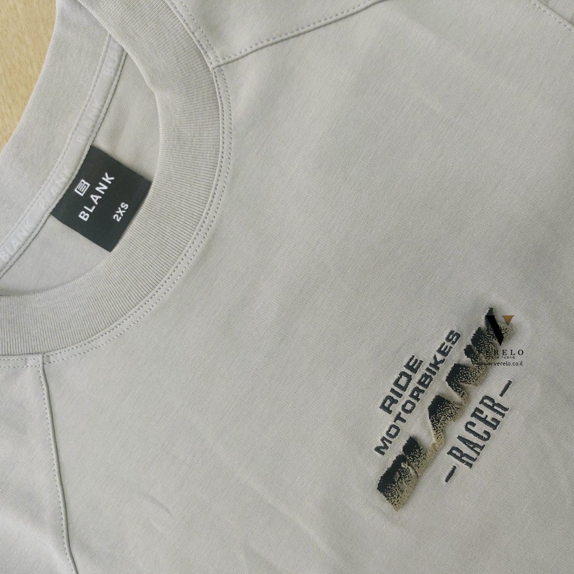 - שילוב שם החברה BLANK עם עיצוב טיפוגרפי קטן בחזה של החולצה עבודת ריקמה.