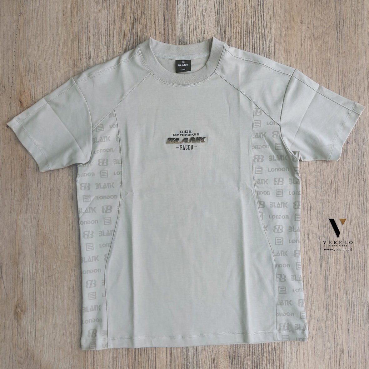 - טי שירט אוברסייז עיצוב בצדדים של החולצה עם שילוב שם החברה BLANK משוכפל בקטן עבודת הדפס.