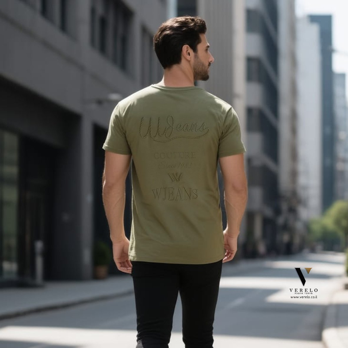 • חולצת טי שירט חלק מקדימה עם לוגו קטן של W JEANS עבודת ריקמה.