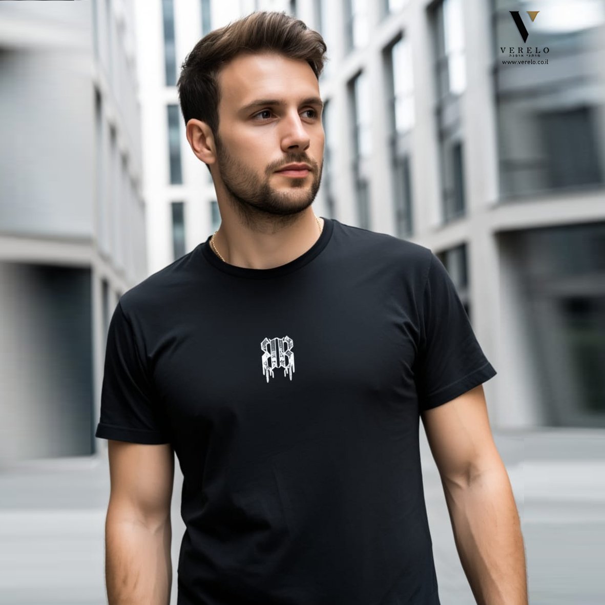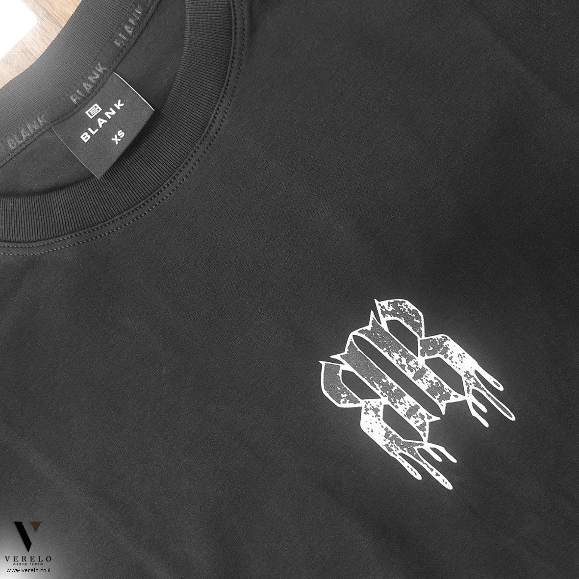טי שירט כותנה מעוצב שילוב עיצוב טיפוגרפי קטן בחזה של החולצה מקדימה עבודת הדפס.