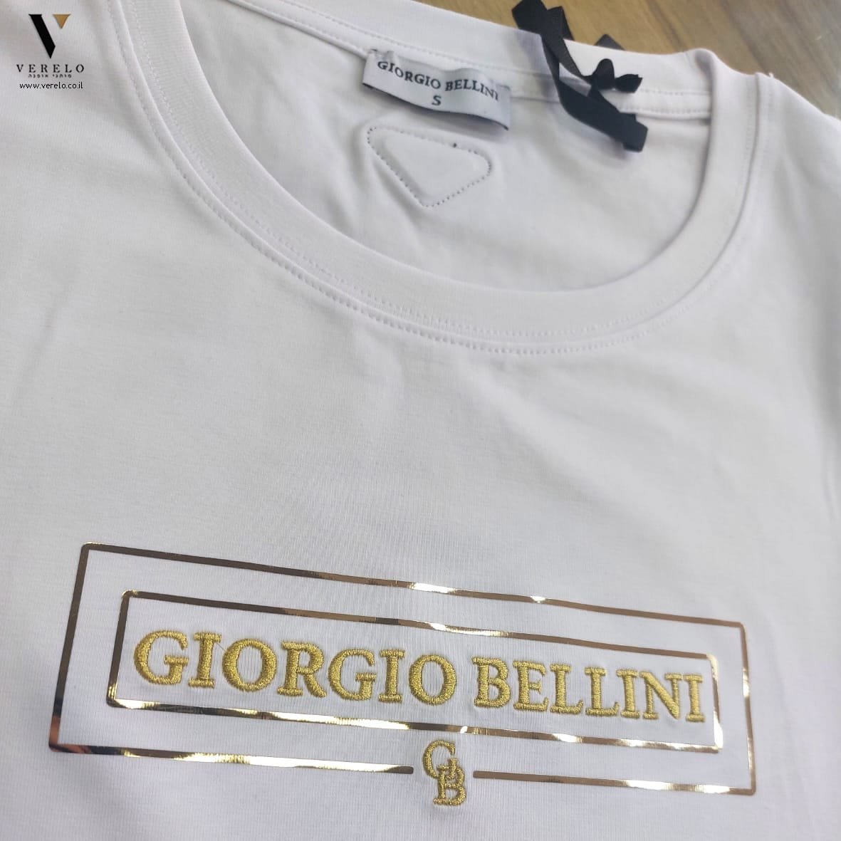 • גזרת סלים עם לוגו מובלט GIORGIO BELLINI בצבע זהב בחזית של החולצה. בגב החולצה תבליט שם BELLINI מוזהב בקטן בתוך בלטוה משולשת .