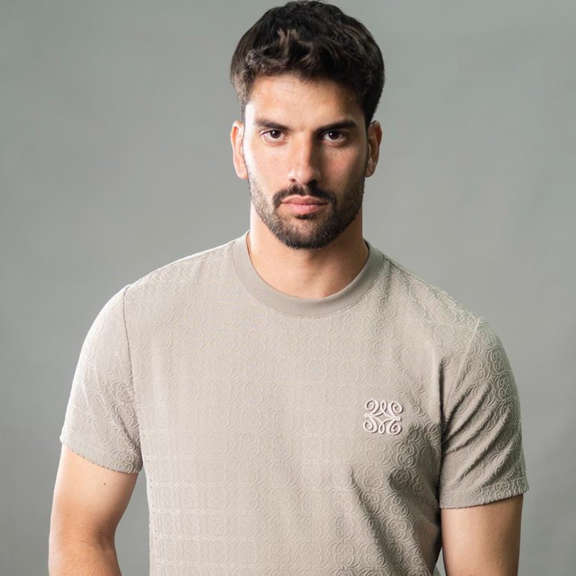 טי-שירט מבד סריג כותנה בעיצוב טיפוגרפי על כל הטי וגם בגב , עשויה מבד כותנה.