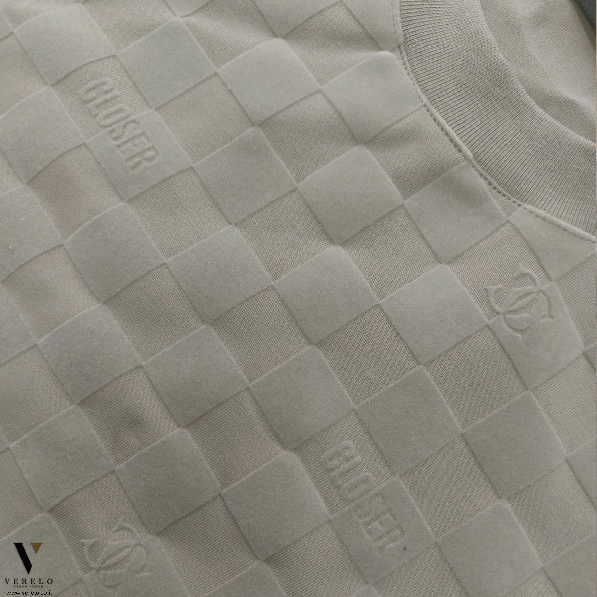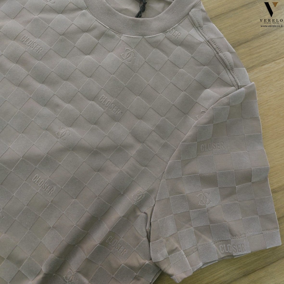 טי-שירט עם עיצוב יפה של CLOSER עם שילוב סמל החברה ושם החברה בקטן עבודת ריקמה.