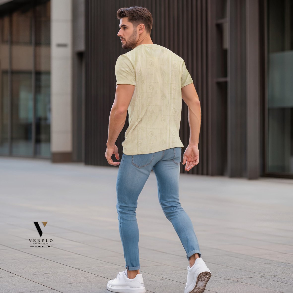 • חולצת קיץ קצרה לגברים מבד סריג של GIORGIO BELLINI לגברים, מתאימה לארוחות ערב ודייטים יומיומיים.