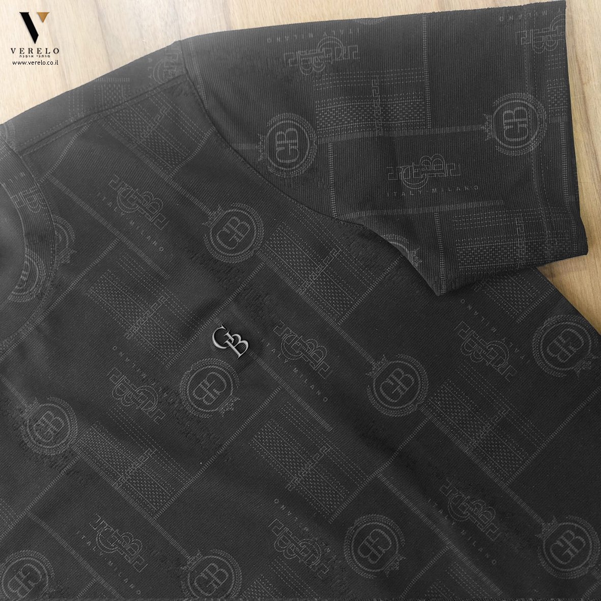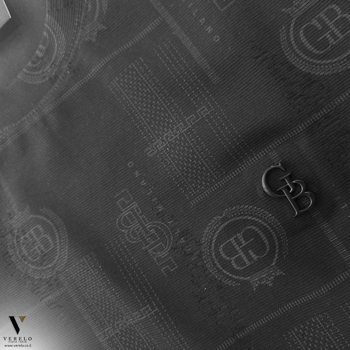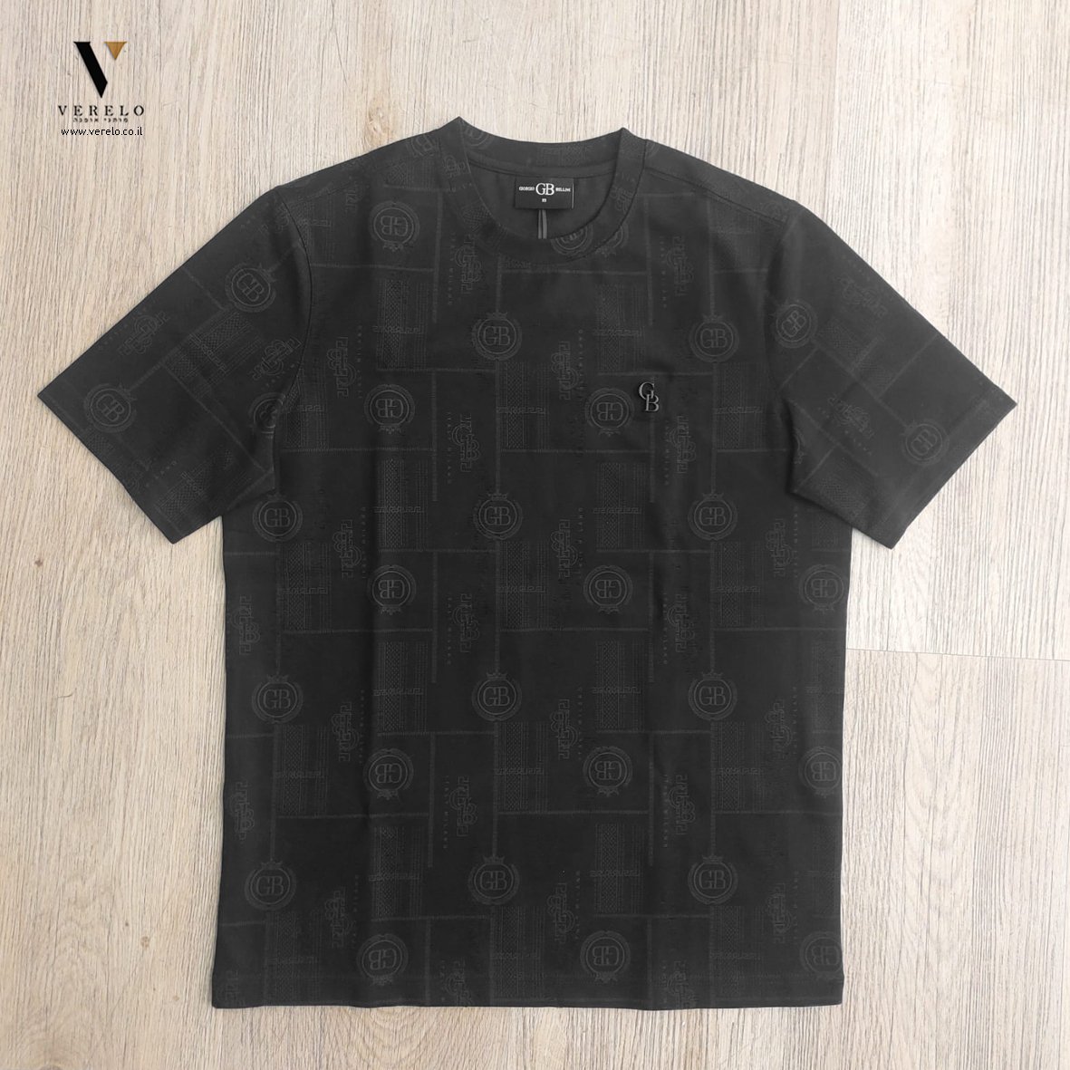 •סמל החברה GB בקטן באותיות בולטות בקטן בחזית החולצה.