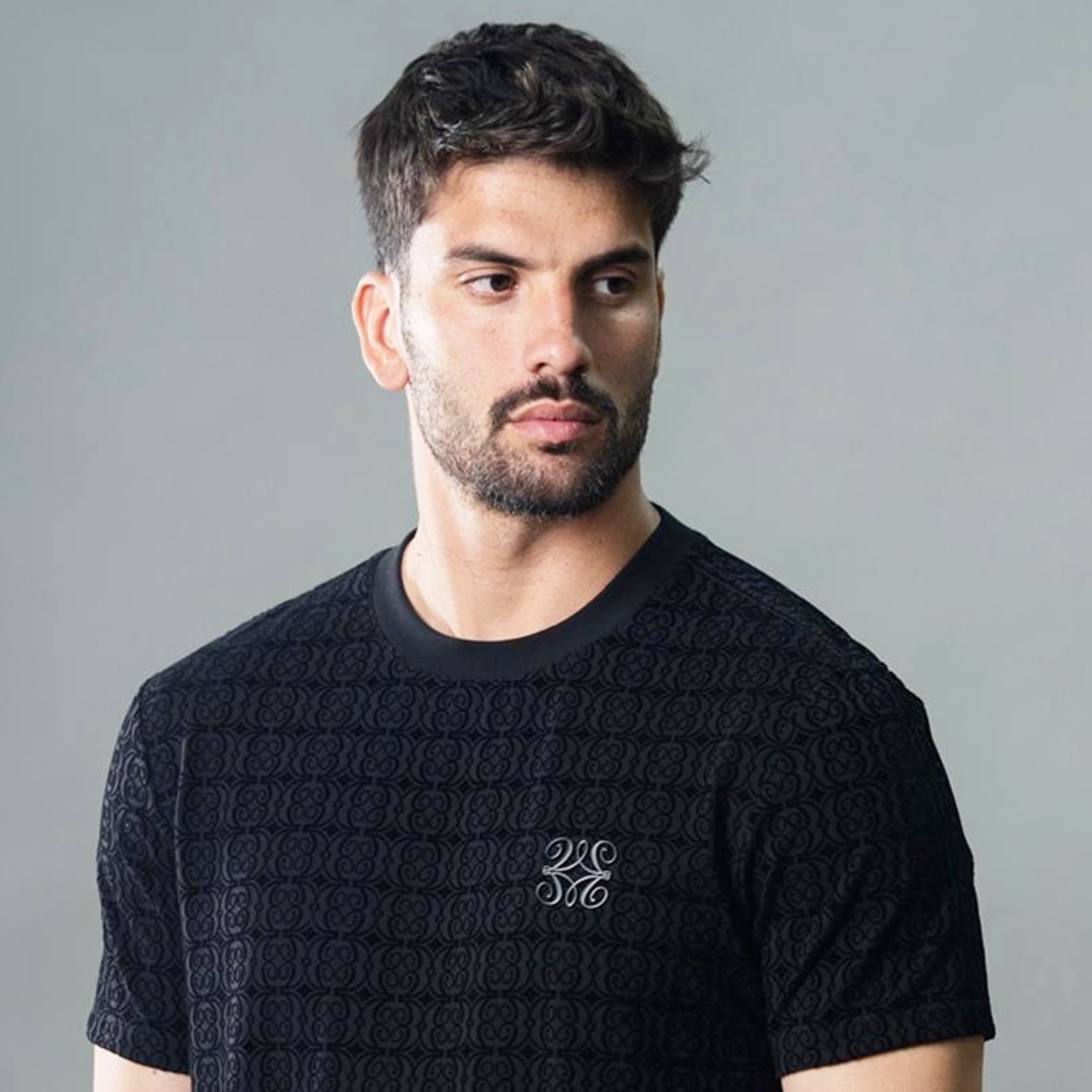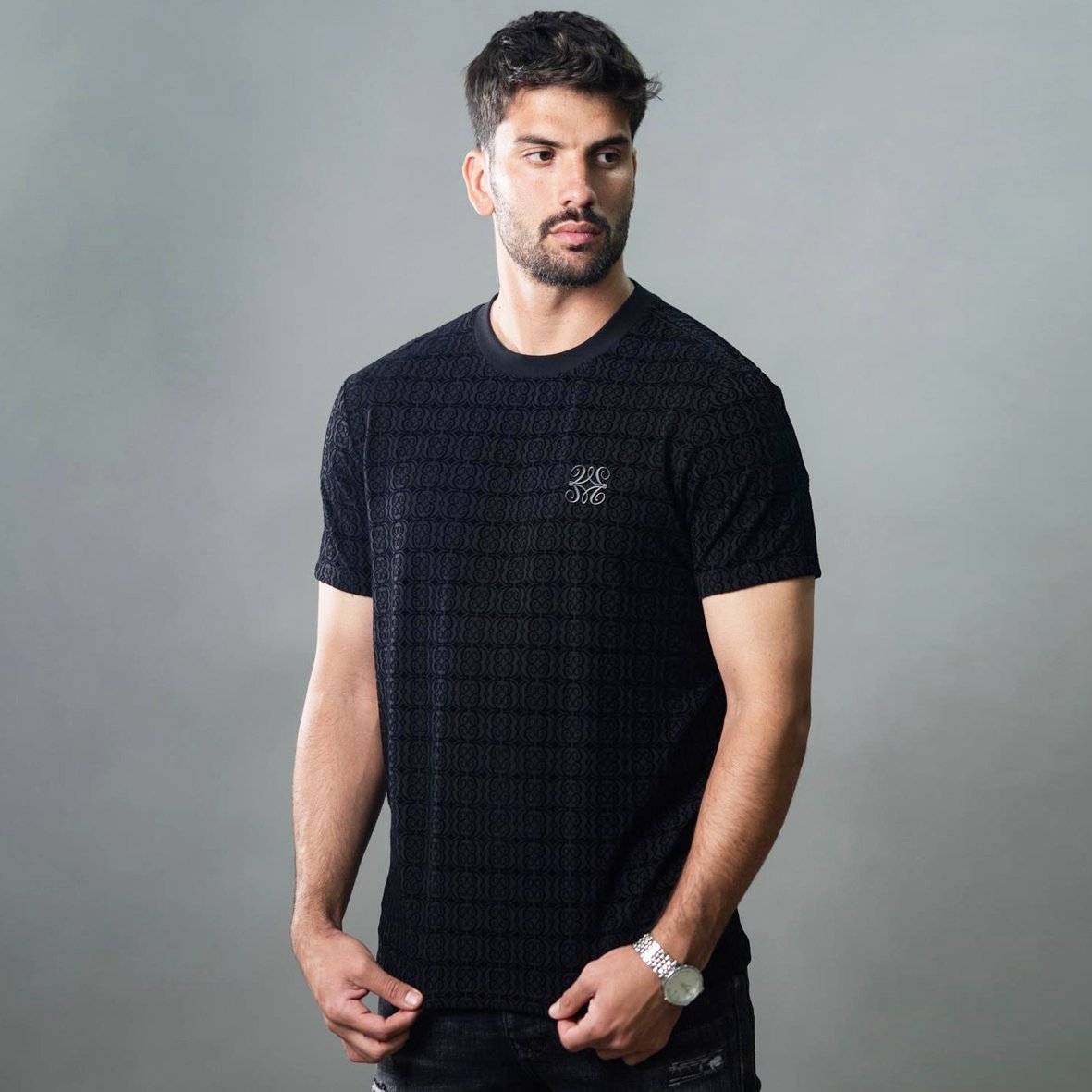 טי-שירט שחור מעוצבת מבד סריג של VALERIO