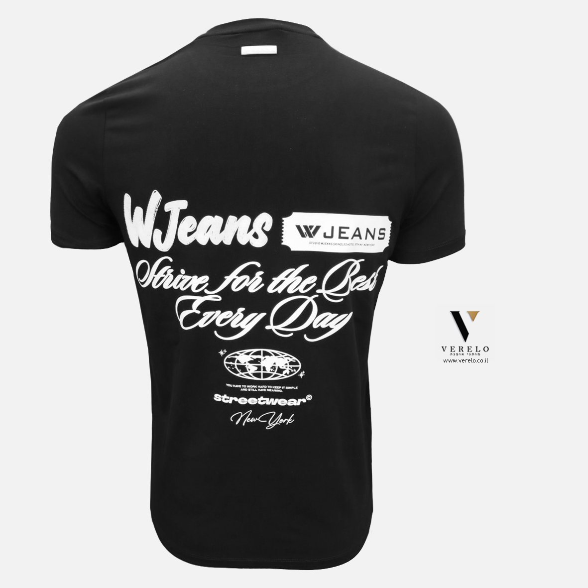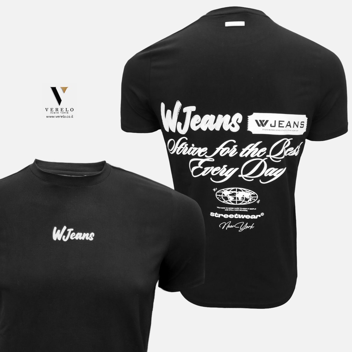 •בחזית החולצה מקדימה עם עיצוב טיפוגרפיה קטן ויפה עם שילוב שם החברה W JEANS .