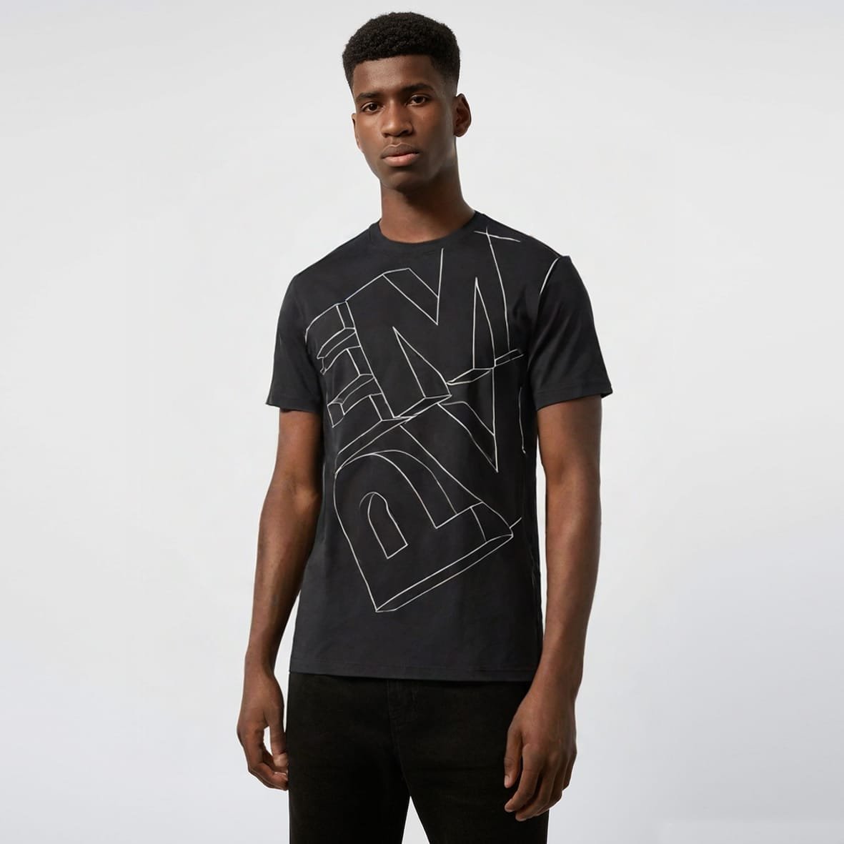 •גזרת REGULAR עם שם המותג בעיצוב טיפוגרפי יפה מודפס בגדול בחזית החולצה .