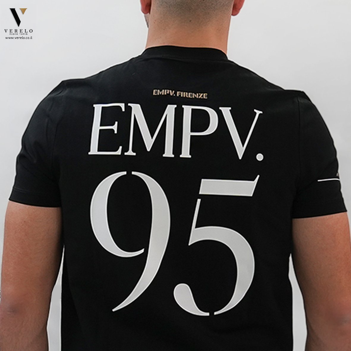 •בגב החולצה עיצוב יפה מודפס וגדול עם שילוב שם החברה EMPORIO VALENTINI .