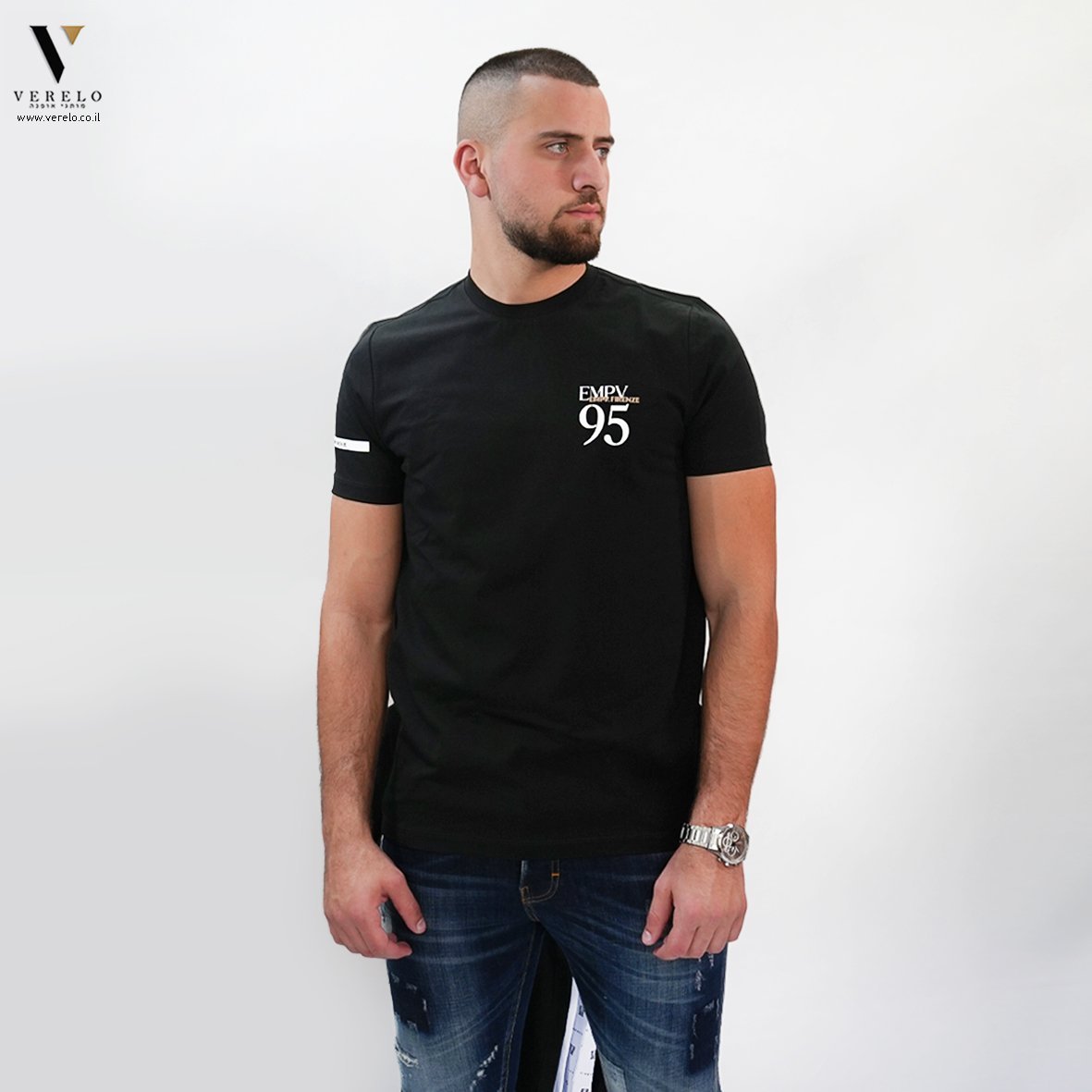 •גזרת REGULAR שם החברה EMPORIO VALENTINI בקטן בחזית החולצה עם אותיות בולטות.