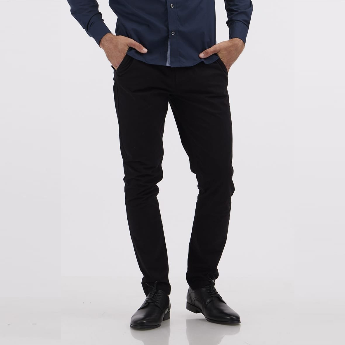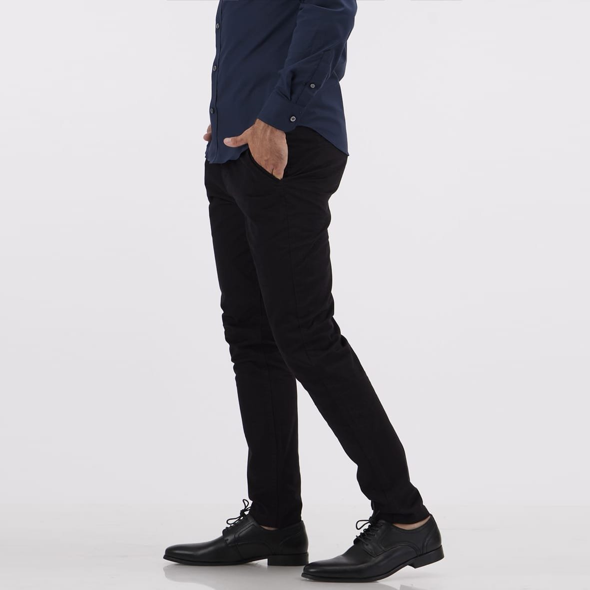 מכנסי צ’ינו ארוכים בגזרת סקיני, עם כיסים צדדיים ואחוריים. הרכב בד: 98% כותנה 2% ספנדקס
