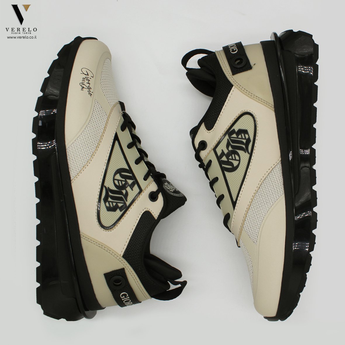 נעליים מעוצבת עם שרוכים GIORGIO BELLINI SH69-WHITE/BLACK