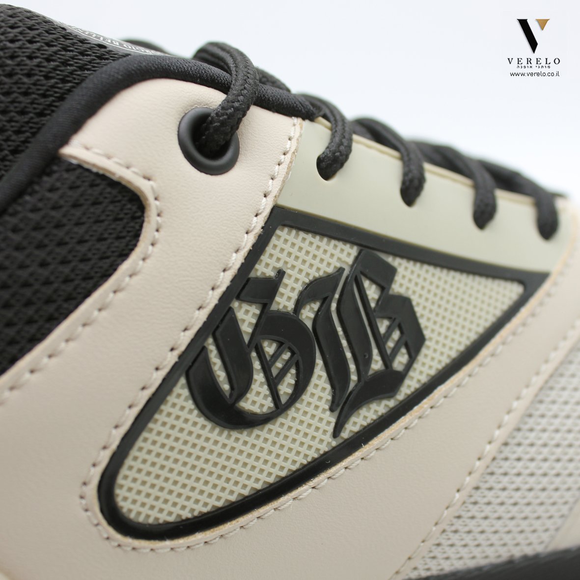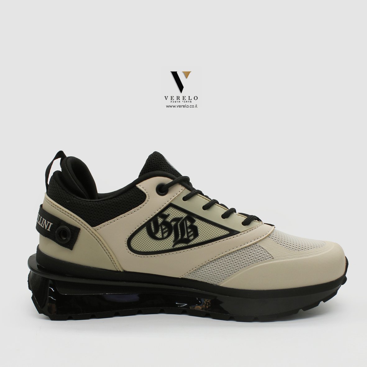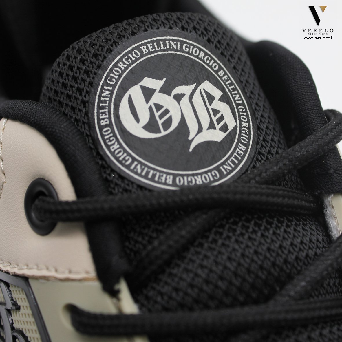• שילוב על לשון הנעל שם החברה בתוך צורת גיעול ובאמצע העיגול שתי אותיות בגדול GB.