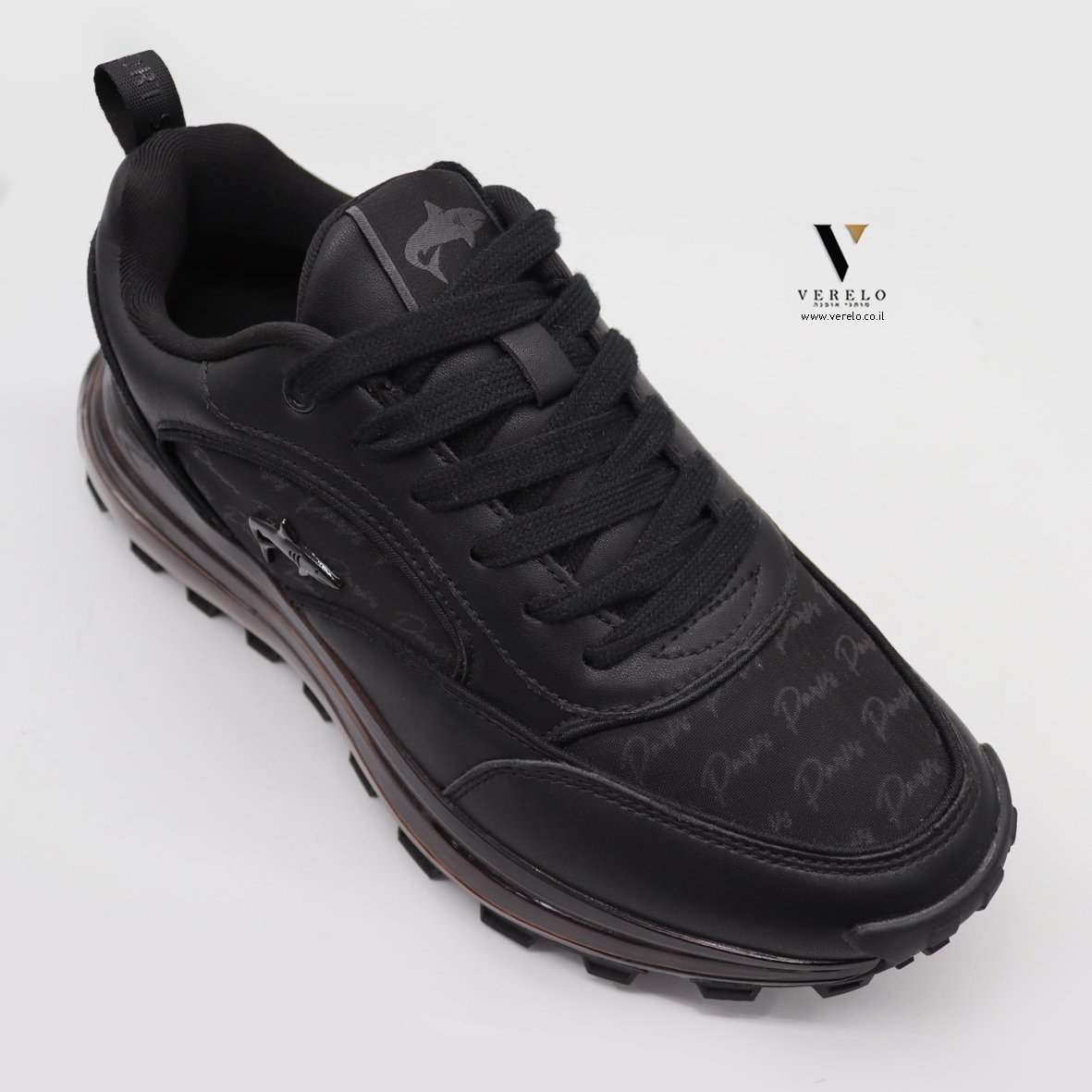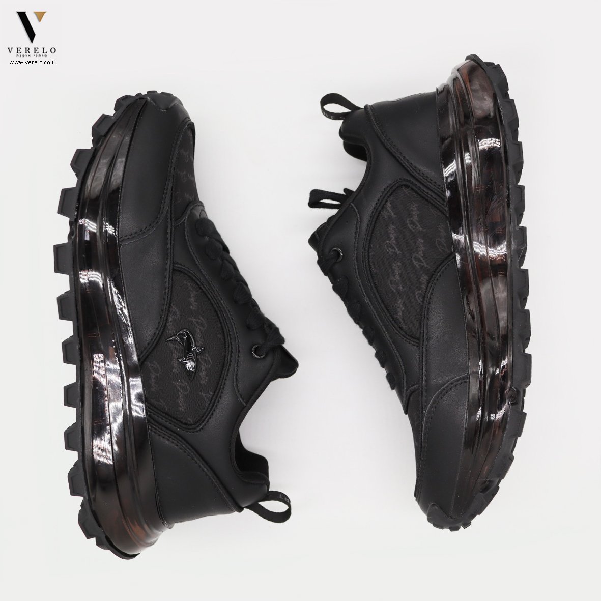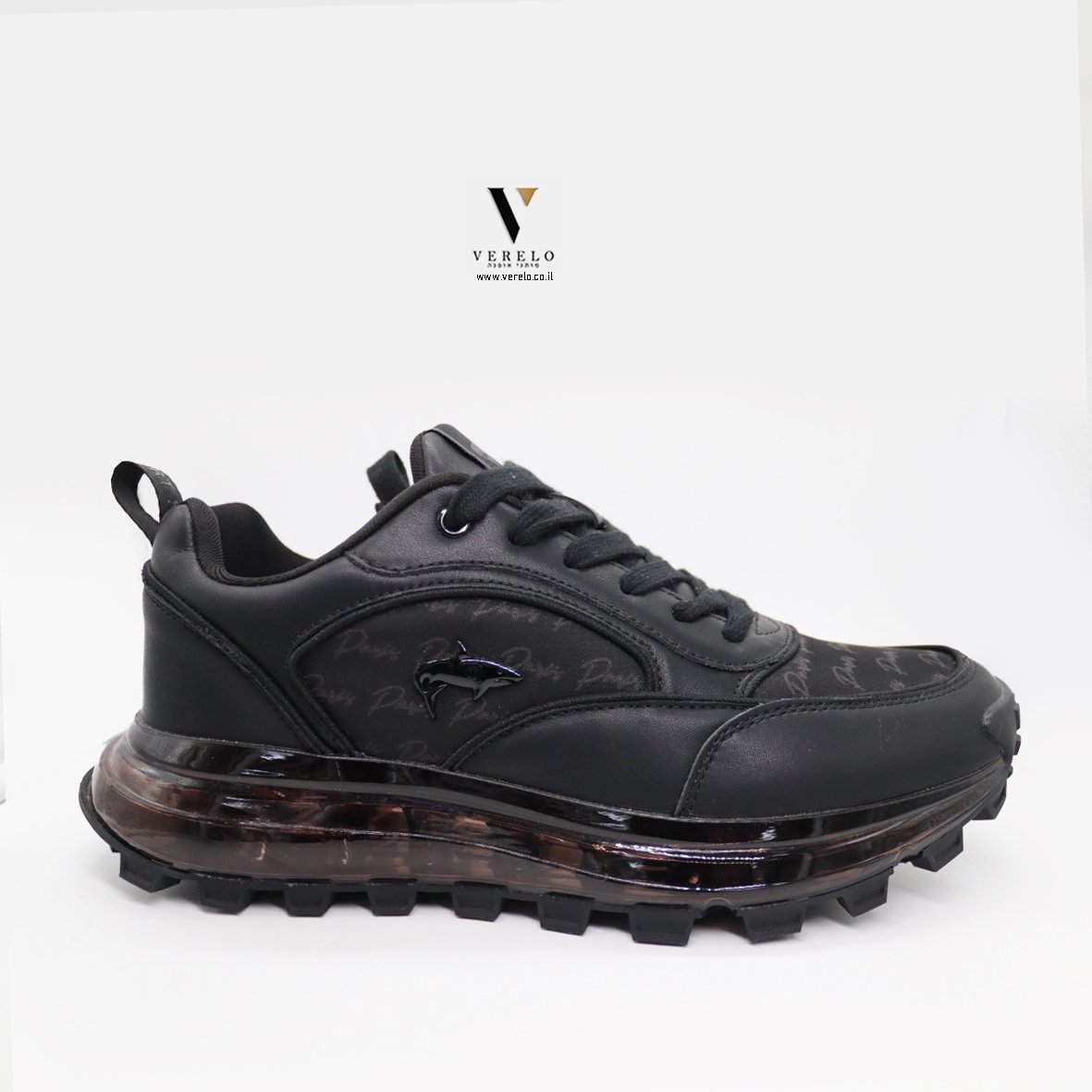 נעלי ספורט אלגנט עם סוליית מעוצבות בדוגמא יחודית המשלבת הדפס שם החברה ושילוב סמל המותג הקריש .