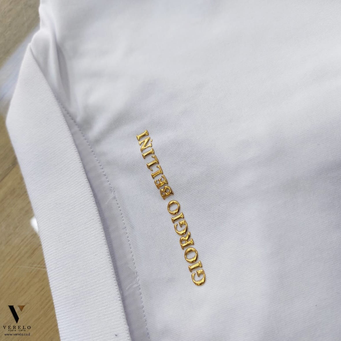 • בגב בחולצה שם החברה GIORGIO BELLINI אותיות בולטות בקטן בצבע זהב.