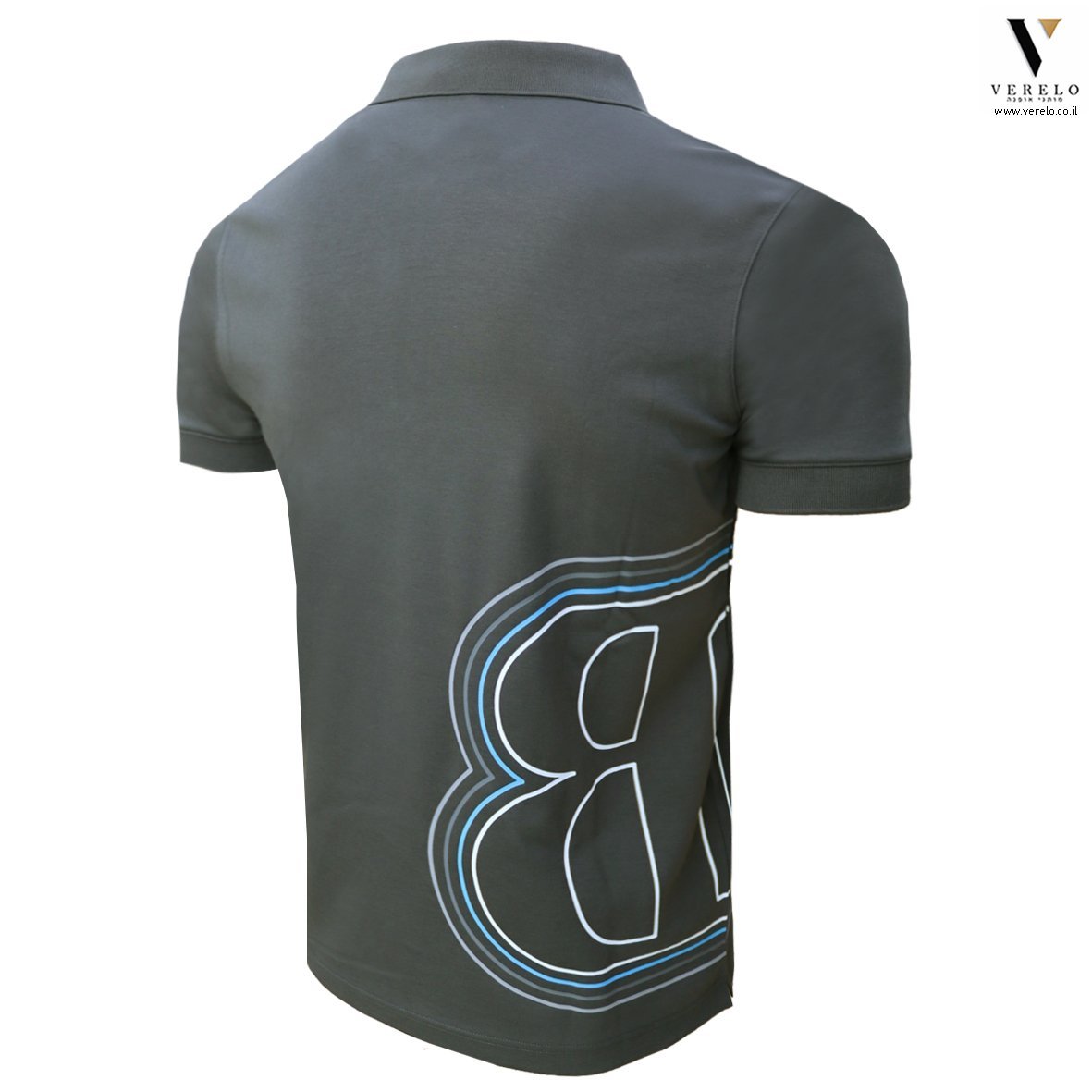 פולו קצר סגנון שמשלב יוקרה וקלאסיקה עם עיצוב טיפוגרפי עבודת הדפס בחזית של החולצה מקדימה ומאחור .