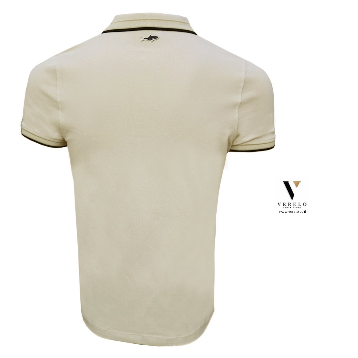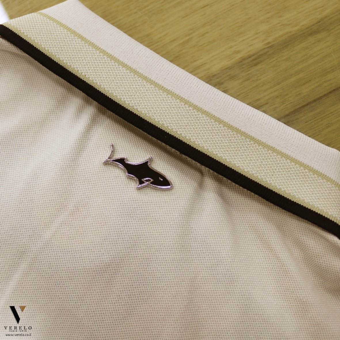 • פולו חלק שרוול קצר עם שילוב סמל הכריש על בלטה בקטן בחזית החולצה .